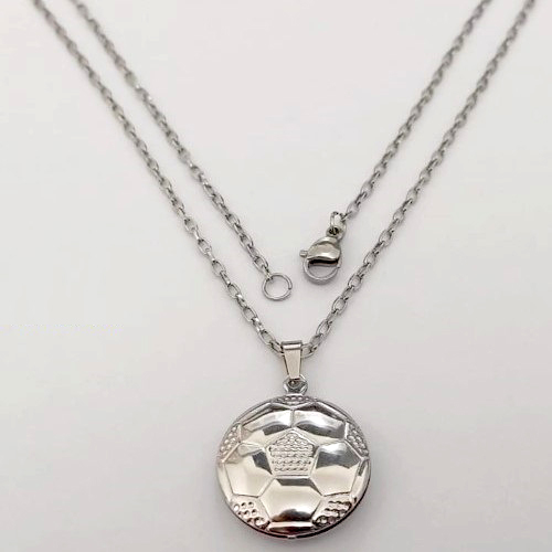 GARGANTILHA EM AÇO INOXIDÁVEL - (07) CORRENTE 50CM COM PINGENTE BOLA DE FUTEBOL DUPLA 20MM - FECHO LAGOSTA - COMPOSIÇÃO: AÇO INOXIDÁVEL (AÇO3056) - ACGG000577