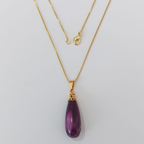 GARGANTILHA FOLHEADA A OURO - BANHADO COM 5 MILÉSIMOS + VERNIZ DIAMOND - GARGANTILHA CORRENTE VENEZIANA 45CM COM PINGENTE PEDRA ROXA (OURO926) OUGG000228