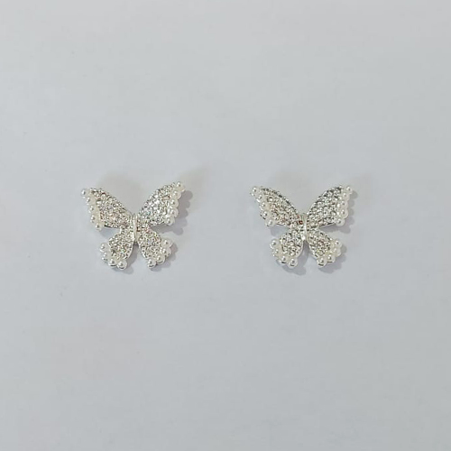 BRINCO FOLHEADO A PRATA COM 50 MILÉSIMOS + VERNIZ DIAMOND -BRINCO DE PINO BORBOLETA COM MICRO ZIRCÔNIAS E MINI PÉROLAS NAS LATERAIS 14MM PRBR001491