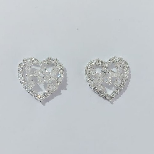 BRINCO FOLHEADO A PRATA COM 50 MILÉSIMOS + VERNIZ DIAMOND - BRINCOS DE PINO MODELO CORAÇÃO VAZADO TODO CRAVEJADO 16MM (PRA768) PRBR001429