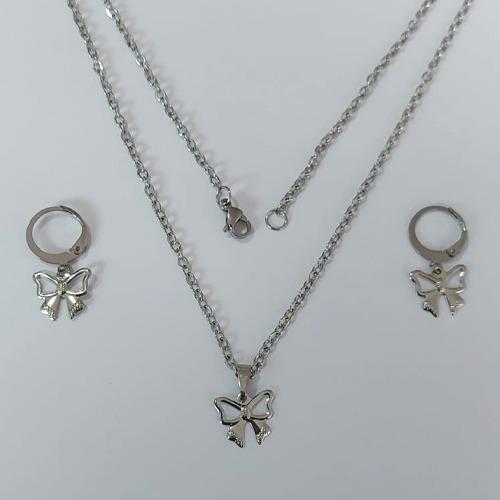 CONJUNTO EM AÇO INOXIDÁVEL - CORRENTE DE 45CM (03) BRINCOS ARGOLAS DE PRESSÃO COM PINGENTES LAÇO VAZADO 12MM AÇO2322ACCJ000129