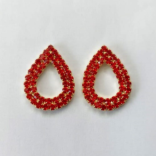 BRINCO FOLHEADO A OURO - BANHADO COM 5 MILÉSIMOS + VERNIZ DIAMOND - BRINCO DE PINO GOTA VAZADA CRAVEJADO EM MICROS ZIRCÔNIAS VERMELHAS 23MM - (OURO761) OUBR000403