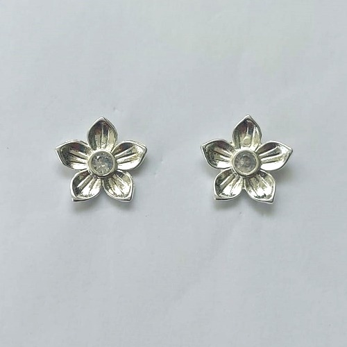 BRINCO FOLHEADO A PRATA COM 50 MILÉSIMOS + VERNIZ DIAMOND - BRINCO DE PINO FLOR COM ZIRCÔNIA 15MM - (PRA602) PRBR001321