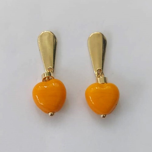 BRINCO FOLHEADO A OURO - BANHADO COM 5 MILÉSIMOS + VERNIZ DIAMOND - BRINCO DE PINO BASE GOTA E PINGENTE EM MURANO CORAÇÃO 10MM - (OURO586) OUBR000376