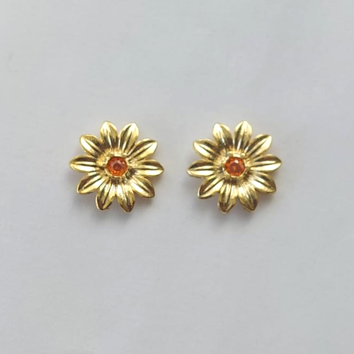 BRINCO FOLHEADO A OURO - BANHADO COM 5 MILÉSIMOS + VERNIZ DIAMOND - (BDK021) BRINCO DE PINO FLOR COM ZIRCÔNIA LARANJA 14MM (OURO376) OUBR000273
