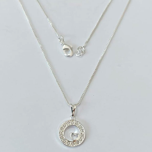 GARGANTILHA FOLHEADA A PRATA COM 50 MILÉSIMOS + VERNIZ DIAMOND - GARGANTILHA CORRENTE 45CM PINGENTE REDONDO VAZADO COM CORAÇÃO E MICROS ZIRCÔNIAS 14MM - FECHO LAGOSTA - PRGG001435