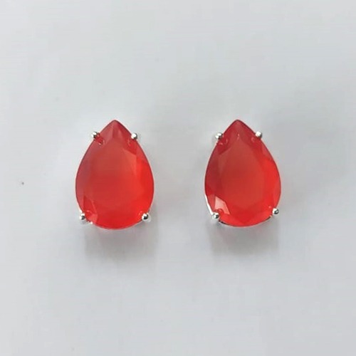 BRINCO FOLHEADA A PRATA COM 50 MILÉSIMOS + VERNIZ DIAMOND - BRINCOS DE PINO COM BASE EM ALTA FUSÃO E PEDRA EM ZIRCÔNIA GOTA 10X14MM (PRA754) PRBR001413