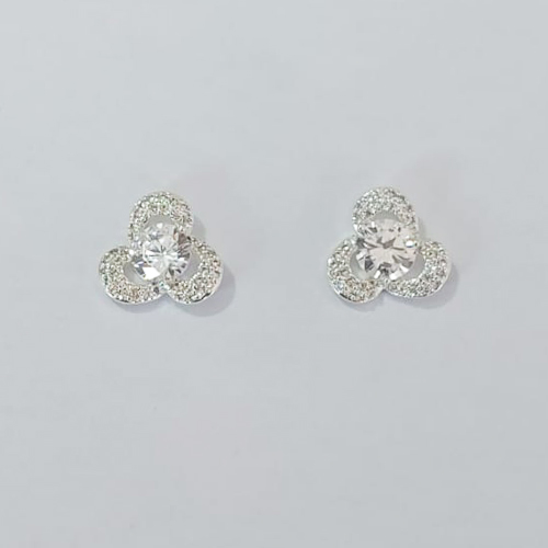 BRINCO FOLHEADO A PRATA COM 50 MILÉSIMOS + VERNIZ DIAMOND -BRINCO DE PINO COM ZIRCÔNIA E MICRO ZIRCÔNIAS 12MM PRBR001488