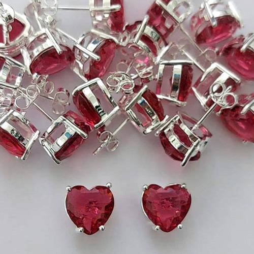 BRINCO FOLHEADA A PRATA COM 50 MILÉSIMOS + VERNIZ DIAMOND - BRINCOS DE PINO COM BASE EM ALTA FUSÃO E PEDRA EM ZIRCÔNIA CORAÇÃO VERMELHA 10X10MM - (PRA514) PRBR001246