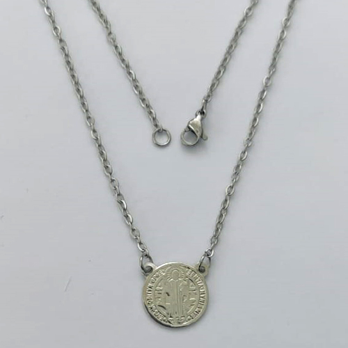 GARGANTILHA EM AÇO INOXIDÁVEL - GARGANTILHA COM CORRENTE 45CM E PINGENTE SÃO BENTO 14MM - COMPOSIÇÃO: AÇO INOXIDÁVEL (AÇO2106) ACGG000463