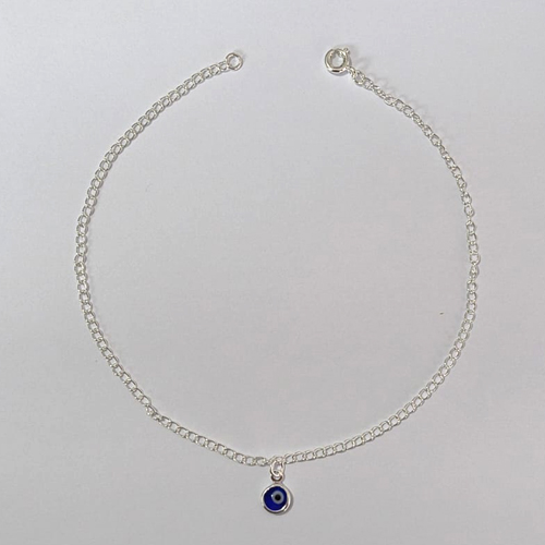 TORNOZELEIRA FOLHEADA A PRATA COM 50 MILÉSIMOS + VERNIZ DIAMOND - TORNOZELEIRA 22CM COM PINGENTE OLHO GREGO - FECHO LAGOSTA PRTO000088