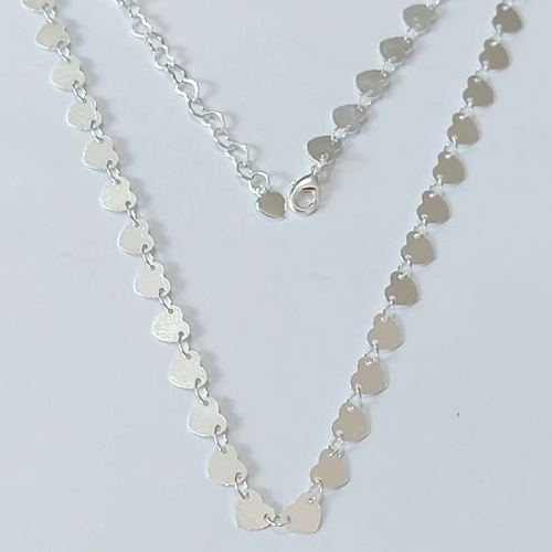 SHOCKER FOLHEADA A PRATA COM 50 MILÉSIMOS + VERNIZ DIAMOND - CORRENTE TODA EM CORAÇÃO 40CM + EXTENSOR - PRSH000180