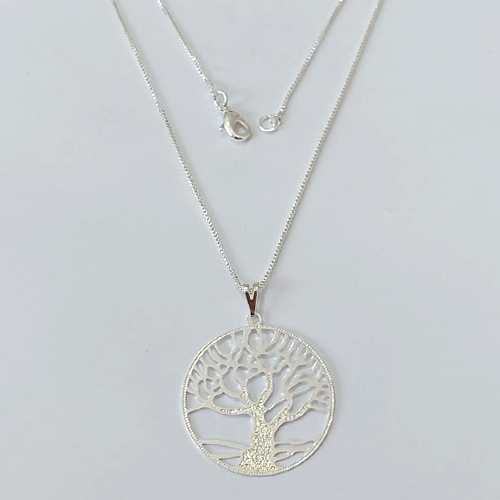 GARGANTILHA FOLHEADA A PRATA COM 50 MILÉSIMOS + VERNIZ DIAMOND CORRENTE VENEZIANA 45CM COM PINGENTE REDONDO VAZADO ÁRVORE DA VIDA 29MM - PRGG001508
