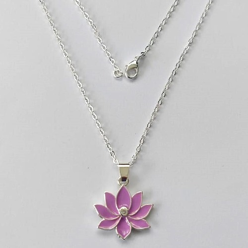 GARGANTILHA FOLHEADO A PRATA COM 50 MILÉSIMOS + VERNIZ DIAMOND FLOR RESINADO E CORRENTE CADEADO DE 45CM- (PRA645) PRGG001483