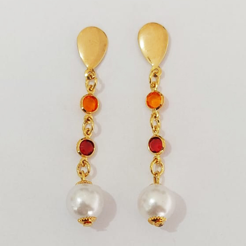 BRINCO FOLHEADO A OURO - BANHADO COM 5 MILÉSIMOS + VERNIZ DIAMOND - BRINCO DE PINO COM PEDRAS CRISTAIS E PÉROLAS 30MM - (OURO941) OUBR000443