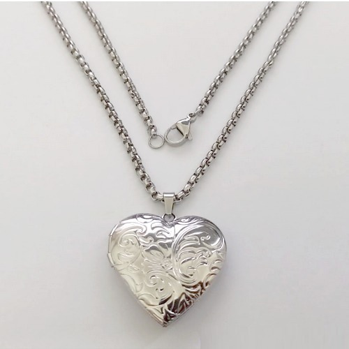 GARGANTILHA EM AÇO INOXIDÁVEL - CORRENTE DE 50CM (ACO24) PINGENTE CORAÇÃO DESENHADO RELICÁRIO 30MM( AÇO0305) - ACGG000552