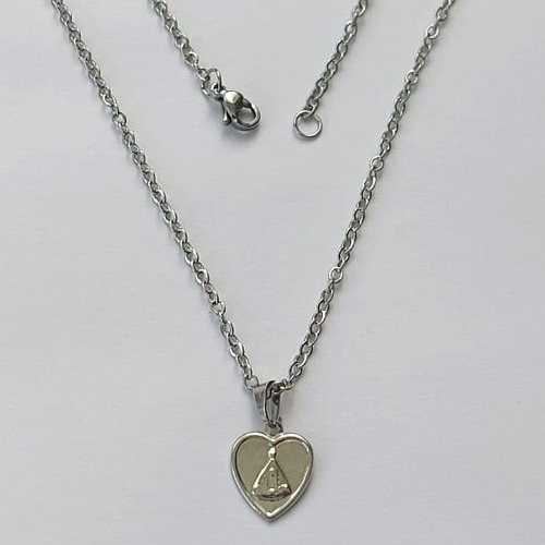 GARGANTILHA EM AÇO INOXIDÁVEL (CX117)- GARGANTILHA COM CORRENTE( ACO03) 50CM E PINGENTE CORAÇÃO COM NOSSA SENHORA APARECIDA 10MM - COMPOSIÇÃO: AÇO INOXIDÁVEL - (AÇO2119) ACGG000473