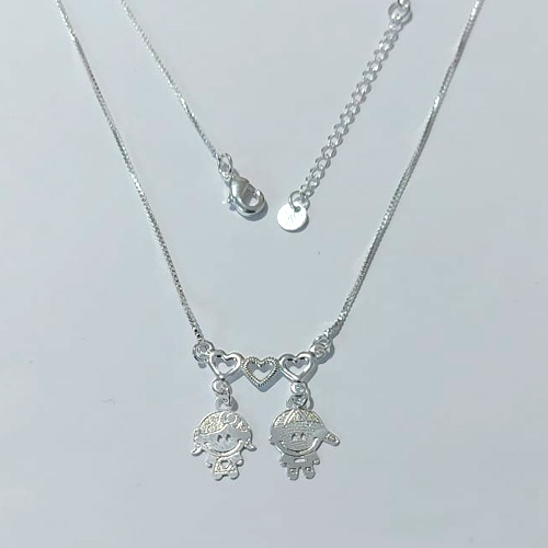 GARGANTILHA FOLHEADA A PRATA COM 50 MILÉSIMOS + VERNIZ DIAMOND CORRENTE VENEZIANA 42CM PINGENTE CORAÇÃO VAZADO 1 MENINO E 1 MENINA 21MM PRGG000721