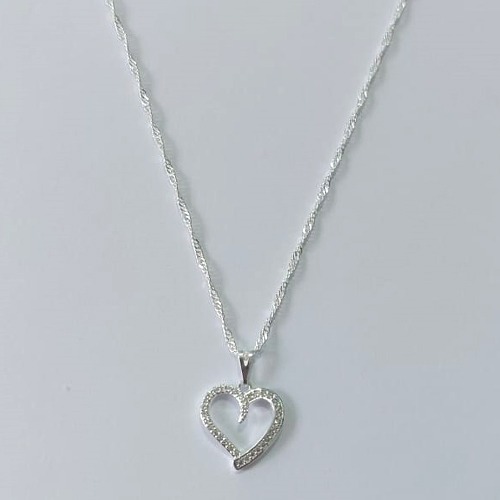 GARGANTILHA FOLHEADA A PRATA COM 50 MILÉSIMOS + VERNIZ DIAMOND CORRENTE SINGAPURA CORAÇÃO COM MICRO ZIRCÔNIAS 16MM PRGG001313