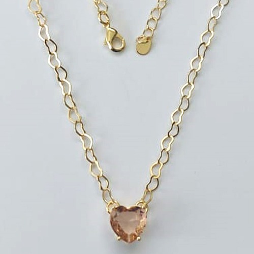 SHOCKER FOLHEADA A OURO 5 MILÉSIMOS + VERNIZ DIAMOND - CORRENTE DE CORAÇÃO 40CM + EXTENSOR E FECHO LAGOSTA - PINGENTE ZIRCÔNIA FORMATO CORAÇÃO SALMÃO 10MM - (OURO889)OUSH000014