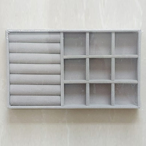 BANDEJA EM VELUDO PARA JOIAS - COR: CINZA - TAMANHO: 12,5 X 21,5CM - PREB000062