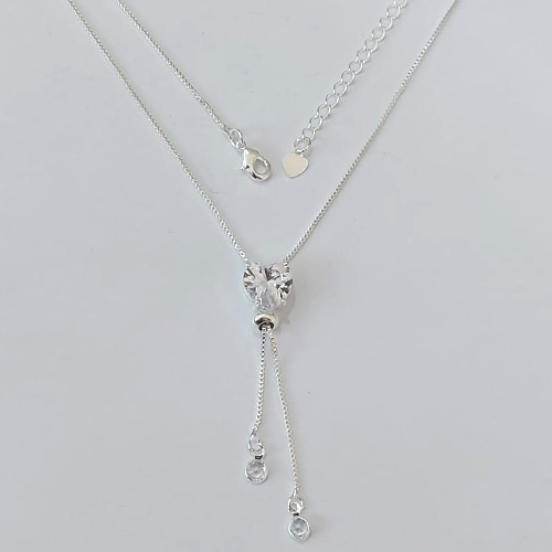 GARGANTILHA FOLHEADA A PRATA COM 50 MILÉSIMOS + VERNIZ DIAMOND CORRENTE VENEZIANA GRAVATINHA 45CM COM PINGENTE EM ZIRCÔNIAS E PEDRA EM ZIRCÔNIA CORAÇÃO 10MM - PRGG001507