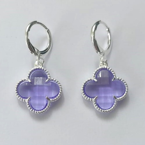 BRINCO FOLHEADO A PRATA COM 50 MILÉSIMOS + VERNIZ DIAMOND ARGOLA DE PRESSÃO(TRANQUETA) TREVO LILÁS VIDRO 13MM(PRA706) PRBR001397