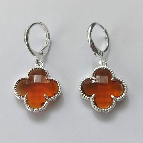 BRINCO FOLHEADO A PRATA COM 50 MILÉSIMOS + VERNIZ DIAMOND ARGOLA DE PRESSÃO(TRANQUETA) TREVO CARAMELO VIDRO 13MM PRBR001398
