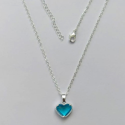 GARGANTILHA FOLHEADA A PRATA COM 50 MILÉSIMOS + VERNIZ DIAMOND - GARGANTILHA CORRENTE CADEADO 40CM CORAÇÃO AZUL VIDRO 10MM - FECHO LAGOSTA + EXTENSOR PRGG00