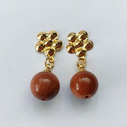 BRINCO FOLHEADO A OURO - BANHADO COM 5 MILÉSIMOS + VERNIZ DIAMOND - BRINCO DE PINO FLOR E PEDRA DO SOL 10MM (OURO442) OUBR000295
