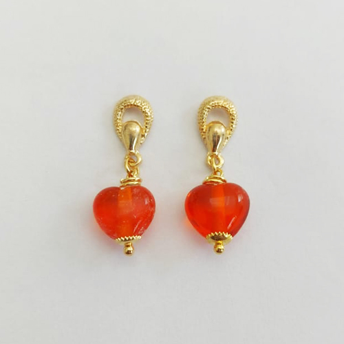 BRINCO FOLHEADO A OURO - BANHADO COM 5 MILÉSIMOS + VERNIZ DIAMOND - BRINCO PINO BASE VAZADA COM PEDRA NATURAL FORMATO CORAÇÃO 31MM - (OURO1037) OUBR000445