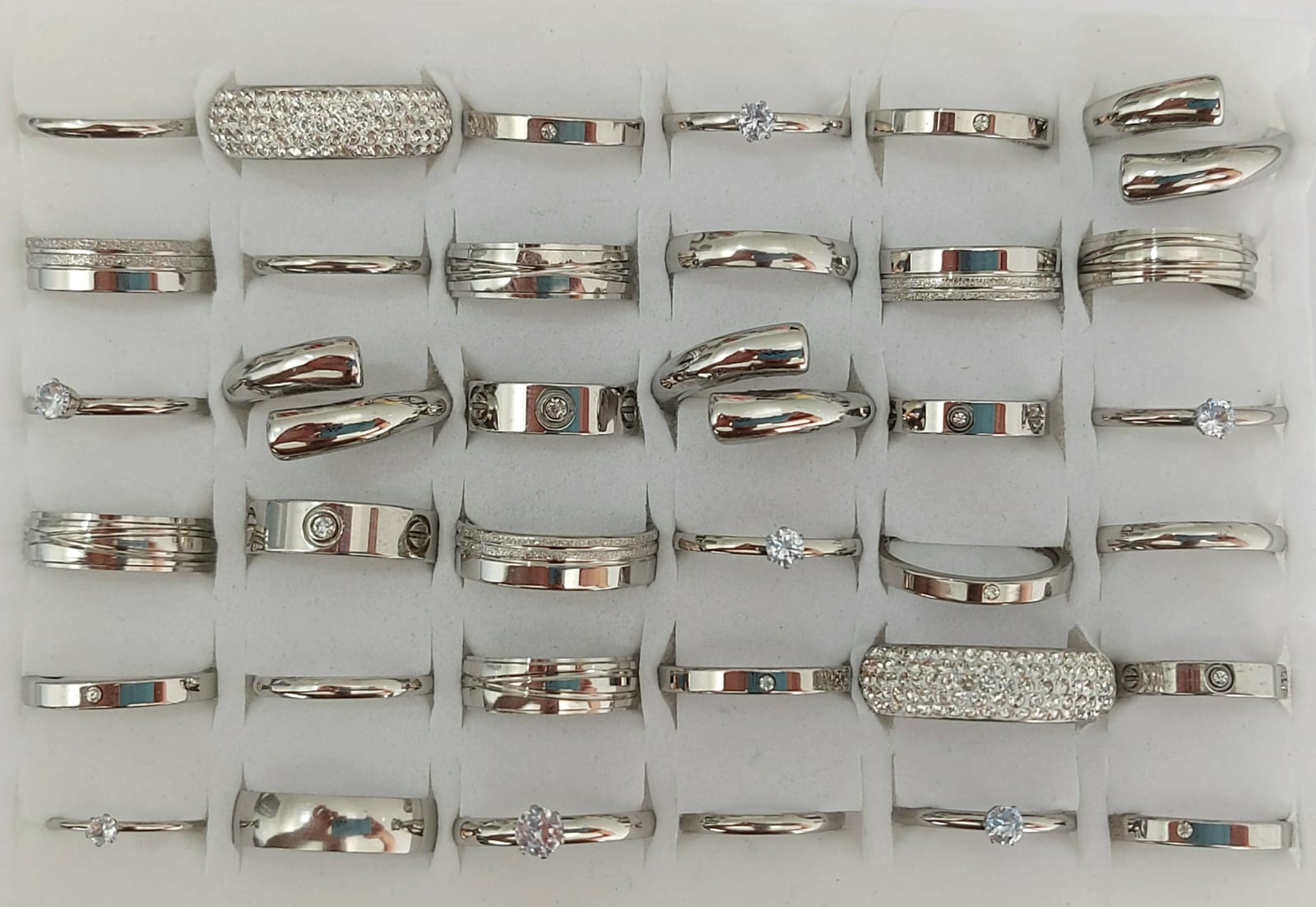 KIT ANEL E ALIANÇA EM AÇO INOXIDÁVEL MODELOS DIVERSOS E NUMERAÇÃO DE 13 ATÉ 33 KIT COM 36 UNIDADES ACKI000035