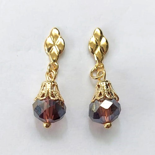 BRINCO FOLHEADO A OURO - BANHADO COM 5 MILÉSIMOS + VERNIZ DIAMOND - BRINCO DE PINO BASE OVAL E CRISTAL AUSTRÍACO 8MM (OURO452) OUBR000300