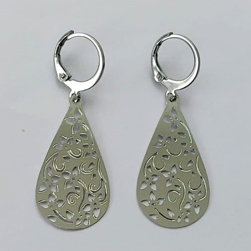 BRINCO EM AÇO INOXIDÁVEL - BRINCO ARGOLINHA DE PRESSÃO COM PINGENTE GOTA COM DETALHES VAZADOS 15X28MM - COMPOSIÇÃO: AÇO INOXIDÁVEL - (AÇO1794) ACBR000316